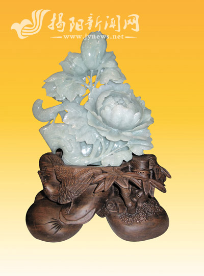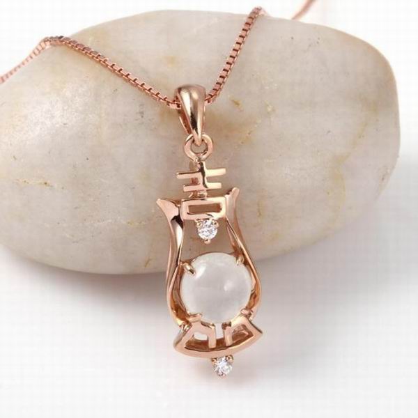 千禧之星吉字中国风蛋面金翡翠吊坠图片