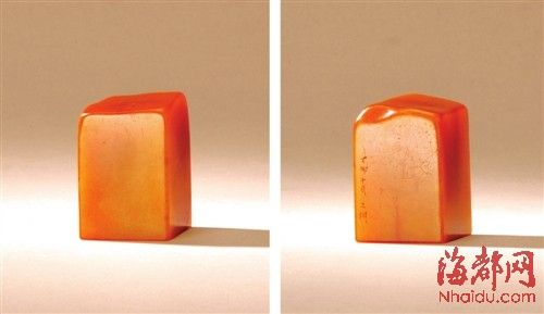 又栩款田黄石素章,重110g,793.5万元成交。吴昌硕篆刻田黄石印章 印文:勇于不敢。重88g,575万元成交。...