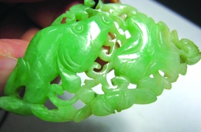 明清老翡翠的鉴定巧雕翡翠手把件