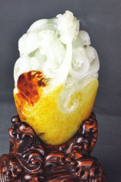 糯冰种翡翠种发黑玉雕师因材施艺打造《祥龙吐瑞》