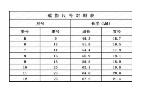 • 戒指欧码和中国码的对比