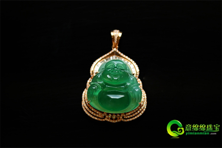 翡翠是一种五光十色的玉石,有红、黄、蓝、绿、黑、白、紫等色彩,其间以绿色最为显贵,在很多色彩中占有无法撼动的位置。而在这绿色傍边,又以祖母绿最为引人。具有祖母绿色彩的翡翠,鲜亮油绿,深幽欲滴,可谓翡翠中的王者,因而又叫做帝王绿翡翠,给人以凝重尊贵之感,是翡翠傍边的尖端翡翠。笑口常开天然缅甸老坑A货玻璃种祖母绿翡翠镶金佛公挂件祖母绿翡翠多见于玻璃种翡翠中,当然冰种翡翠和糯种翡翠也有祖母绿色的翡翠。祖母绿翡翠的产值十分稀疏,物以稀为贵,所以祖母绿翡翠的价格十分昂扬,是历届翡翠拍卖会上的压轴之物。2000年,一枚祖母绿翡翠手镯拍得一千万港元;2007年,一对祖母绿翡翠耳环以人民币1,330,000的...